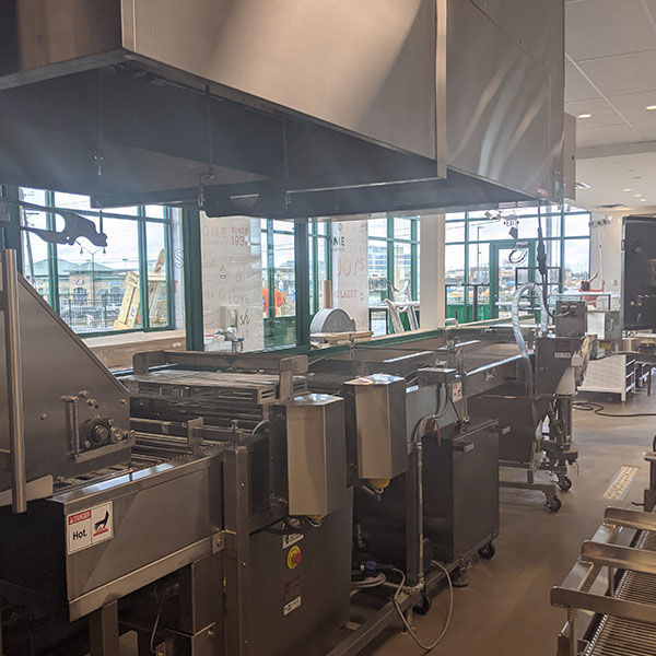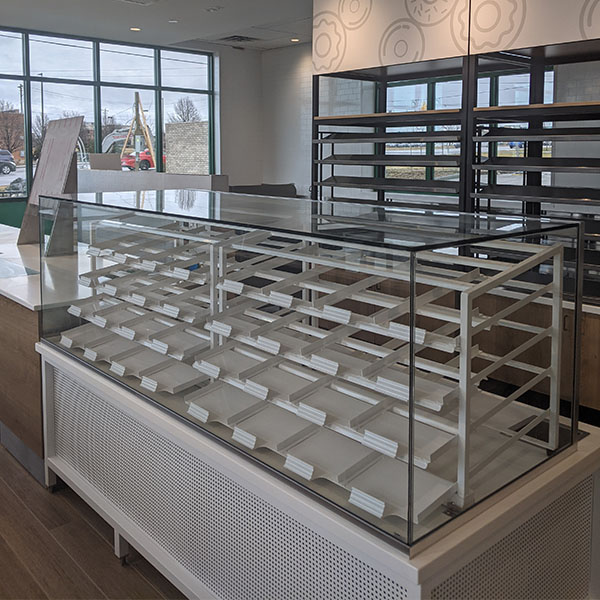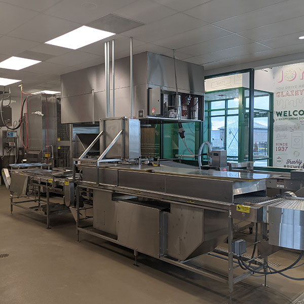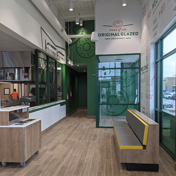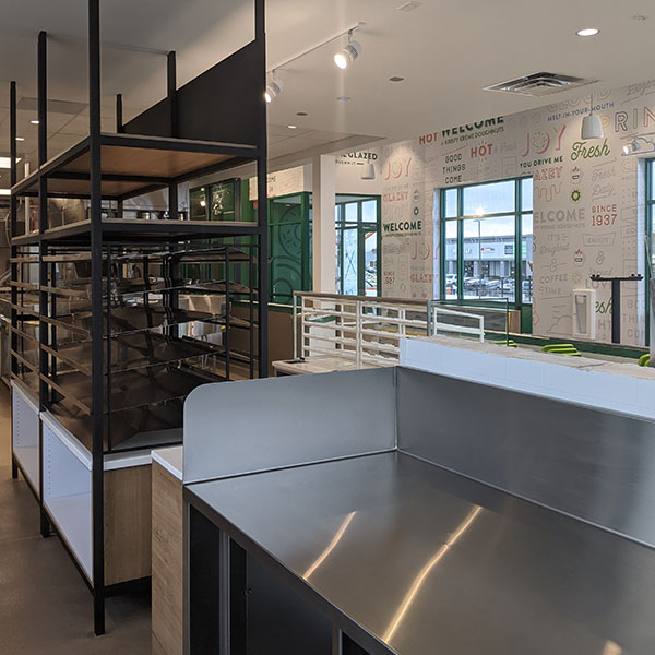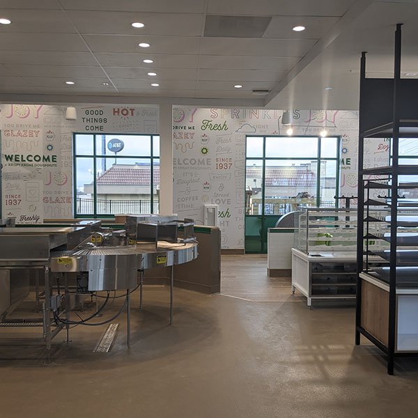 Krispy Kreme is notorious for its stainless steel conveyor system, where customers can watch donuts being made right before their eyes. This stainless steel conveyor system is intricate and detailed. We spent a lot of time making sure we cleaned it to Krispy Kreme’s standards. Also, this store’s structure was 40% windows with some windows as high as 19 feet.
